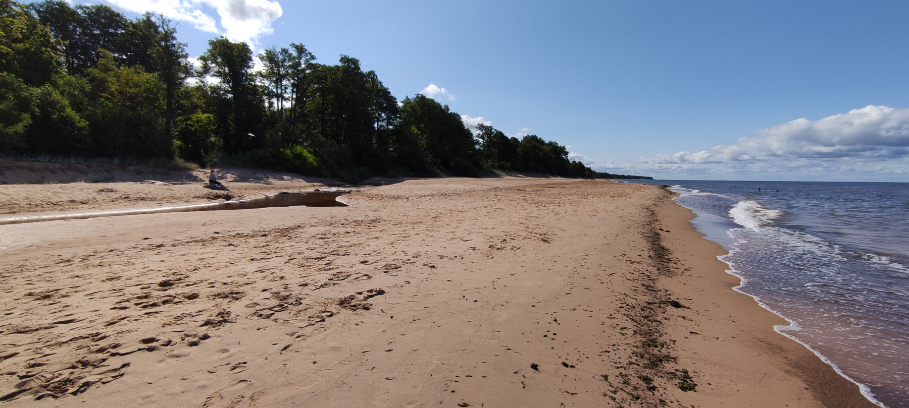 Nach Liepāja kommt an der Küste erstmal keine größere Stadt mehr (außer Ventspils (dt. Windau), aber das haben wir uns nicht genauer angesehen). So fahren wir immer weiter durch kleine Fischerdörfchen und suchen uns den ein oder anderen abgelegenen Strand, von denen es sehr viele gibt. Das hat uns auch zu einem kleinen Fauxpas geführt: Auf dem Weg zu einem Strand, der laut Bewertungen sehr wenige Besucher haben soll, fahren wir durch einen Wald mit sehr sandiger Schotterstraße (was für das Baltikum grundsätzlich nicht verwunderlich ist – wir waren teilweise schon kilometerlang auf Schotterpisten unterwegs, die als normalen Straßen ausgewiesen sind). Ihr könnt es euch vielleicht schon vorstellen: Wir sind im Sand stecken geblieben! Nach einem kurzen Moment der Ratlosigkeit, versucht Flaki bei einem nahegelegenen Campingplatz Hilfe zu organisieren – mit Erfolg! Zwanzig Minuten später können wir bereits weiterfahren, weil uns eine Gruppe sehr freundlicher junger Letten bereitwillig aus dem Schlamassel gezogen haben. Das Ganze hat sich auf jeden Fall gelohnt, denn der Strand war fast menschenleer und es gab dort super Wellen!